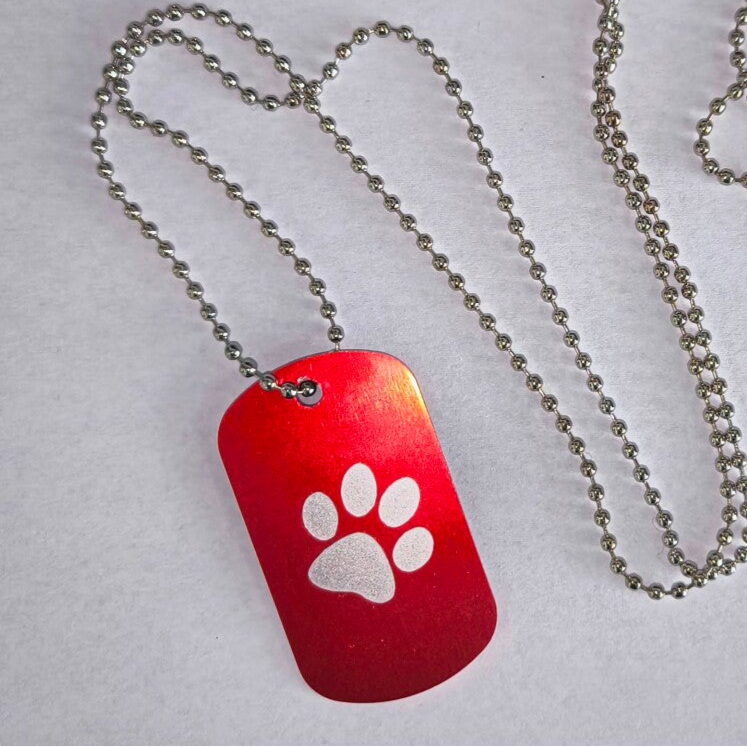 Jedes Dogtag wird mit einer Dekorfolie per Hand beklebt und mit deinem Namen versehen.